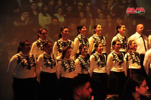 أناشيد وطنية ودينية متنوعة تحمل معاني حب الوطن والمحبة والايمان شدا بها كورال سيدة الوادي على خشبة مسرح المركز الثقافي العربي في السويداء بحضور فعاليات دينية وأهلية ورسمية.