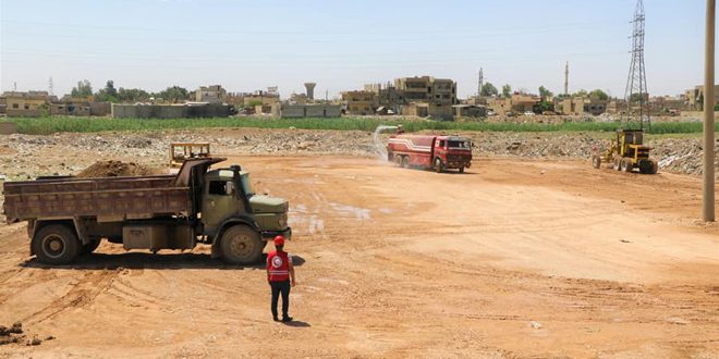 أنجز فرع الهلال الأحمر العربي السوري في محافظة الحسكة أعمال تأهيل مكب النفايات المؤقت الكائن على أطراف مدينة الحسكة.