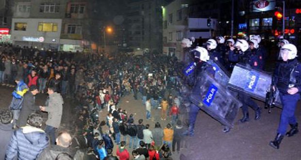 وأكدت الصحيفة أن الشرطة التركية استخدمت الغاز المسيل للدموع وخراطيم المياه والهراوات لتفريق المحتفلين الذين احتشدوا أمام مبنى البلدية. وفي سياق آخر استخدمت الشرطة التركية الغاز المسيل للدموع وخراطيم المياه لتفريق المحتفلين بتطهير مدينة عين العرب من تنظيم داعش الإرهابي في بلدة توزلو تشاير التابعة للعاصمة أنقرة مساء أمس.