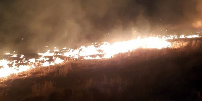 أخمد فوج إطفاء درعا بالتعاون مع مديرية الدفاع المدني حريقاً كبيراً طال مساحة كبيرة مزروعة بالقمح في بلدة سحم الجولان بريف درعا الغربي.