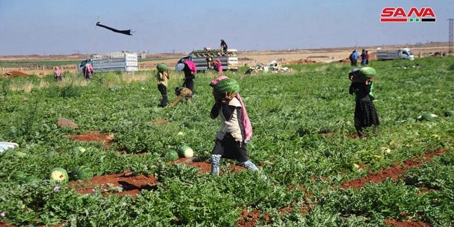 قدرت مديرية الزراعة بالسويداء إنتاج أكثر من 10 آلاف طن من البطيخ الأحمر للموسم الحالي ضمن المساحات المزروعة التي تجاوزت 2430 دونماً.