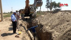 وأضاف أن المشروع الثالث هو تنفيذ خط من البولي إيتيلين يصل بين الخط الواصل من المحطة والخطين المتفرعين عنه لتغذية التجمعات السكانية في المنطقة الممتدة من دوار الصالحية إلى دوار النخلة في حطلة شرقاً ومن دوار الصالحية إلى دوار معمل الورق في الحسينية غرباً بطول إجمالي يصل إلى نحو 3500 متر منها 1500 متر بقطر 200 مم و2000 متر بقطر 160 مم ويتم تنفيذه بالتعاون مع منظمة ميدير السويسرية.