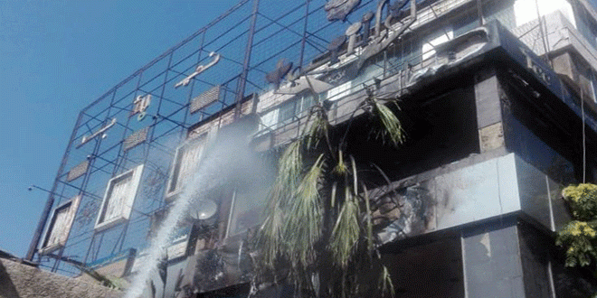 وذكر قائد فوج إطفاء دمشق العميد داؤد عميري لمراسلة سانا أن الحريق اندلع بداية في شجرة نخيل عند مدخل حي ساروجة وامتدت النيران الى واجهة أحد الأبنية مبينا أنه تم إخماد الحريق بالوقت المناسب مخلفا أضراراً بسيطة.