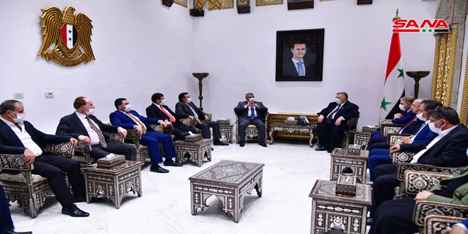 أكد رئيس مجلس الشعب حموده صباغ خلال لقائه اليوم رئيس اتحادي المقاولين العراقيين والمقاولين العرب علي فاخر السنافي والوفد المرافق ضرورة تعزيز التعاون بين النقابات والمنظمات السورية والعراقية ولا سيما في مرحلة إعادة إعمار وبناء ما دمره الإرهاب وتسخير الجهود ليعود البلدان أفضل مما كانا عليه.