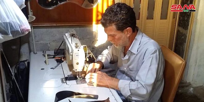 رامز 45 عاماً يوضح لمراسل سانا أنه استفاد بمشروعه الصغير من خبرته في مجال تنجيد فرش السيارات لمدة 15 عاماً مبيناً أنه يعتمد بعمله حالياً على ماكينة درزة صناعية واحدة كان يملكها تتوافق مع مهارته اليدوية التي بدأ يكسبها لزوجته تباعاً ليصنعا حقائب متعددة الاستخدامات والقياسات.