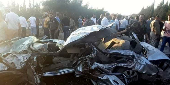 وأشار العميد غياث عاقل مدير الدفاع المدني بحمص في تصريح لمراسلة سانا إلى أن الحادث وقع مساء أمس جراء انحراف شاحنة قاطرة ومقطورة عن الطريق قرب شنشار بريف حمص بعد انفجار إطارها واصطدامها بسيارة من نوع شام تقل عائلة من بلدة شين في ريف حمص الغربي موضحاً أن الحادث أدى إلى وفاة سيدة وإصابة عدد من أفراد عائلتها بجروح.