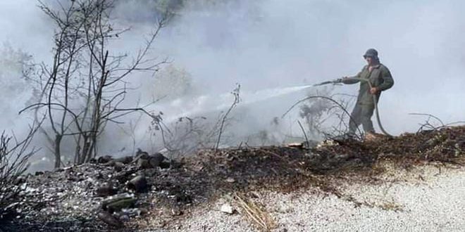 أخمد فوج إطفاء جبلة بمشاركة فوج إطفاء الدالية حريقاً اندلع اليوم في قرية بعبده- طريق شمينيف بريف جبلة.