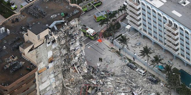 وانهار منذ أسبوع بناء سكني مكون من 12 طابقاً في مجمع “تشامبلين” المطل على المحيط في ميامي وطالت الكارثة 55 شقة.