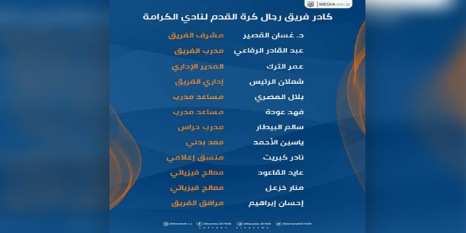 عين نادي الكرامة كادراً تدريبياً جديداً لفريقه الأول بكرة القدم بقيادة المدرب عبد القادر الرفاعي.