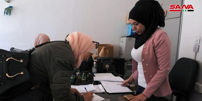 وخلال استقبالها الطلبات في ديوان المجمع أوضحت ياسمين نسب أنها تقدم استمارات مجانية وطلب بيانات الخدمة مجاناً للمراجعين يدون عليها الاسم والسنة والبيانات الأخرى مرفقة بصورة الهوية وبيان خدمة قديم إن وجد لتسجل بشكل إلكتروني وورقي في سجلات نظامية وترسل أصولاً إلى المديرية.