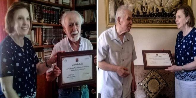 في إطار الاحتفاء بالقامات الأدبية والثقافية كرمت الدكتورة لبانة مشوح وزيرة الثقافة كلا من الأديب حيدر حيدر والفنان التشكيلي الدكتور ممدوح النابلسي في منزليهما تقديراً لعطائهما ومسيرتهما في إغناء الحركة الثقافية في سورية.