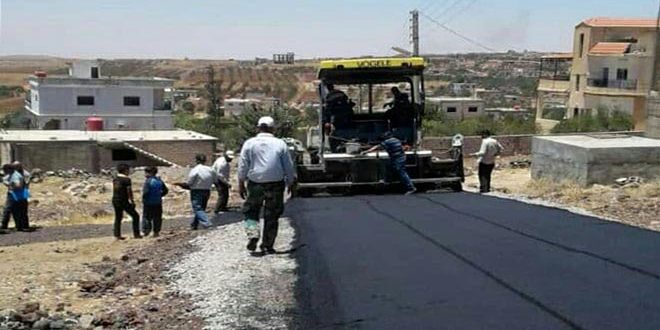 وذكر رئيس مجلس البلدة ياسر قماش لمراسل سانا أن المشروع ينفذ بالتعاقد مع مديرية الخدمات الفنية ويشمل بمحوره الأول تعبيد طريق بالحي الجنوبي الشرقي تم شقه لتخديم منازل المواطنين وفي المحور الثاني مد قميص اسفلتي لتحسين الحركة على الطريق.