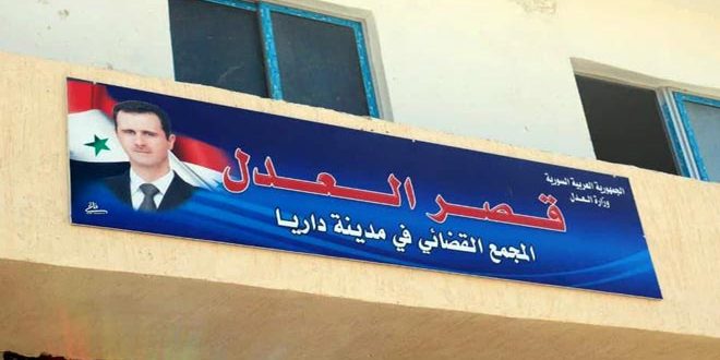 بعد الانتهاء من إعادة ترميمها وتأهيلها بجهود المجتمع المحلي بعد الأضرار التي لحقت بها من جراء الإرهاب بدأت المحكمة في مدينة داريا باستقبال المراجعين وتقديم ما يحتاجونه من خدمات.