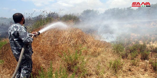 أخمد عناصر فوج إطفاء طرطوس بالتعاون مع مديرية الزراعة والدفاع المدني حريقاً اندلع على طريق صافيتا قرب قرية بيت كمونة.