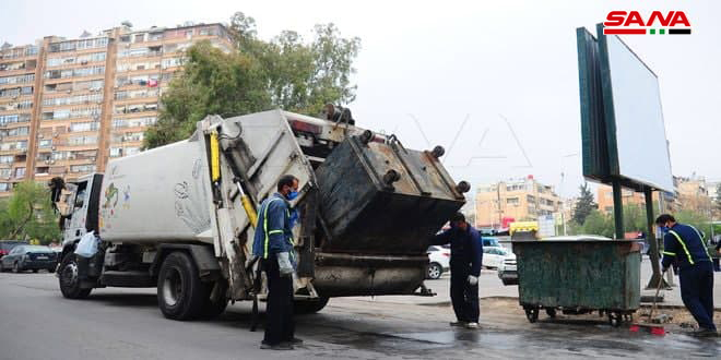 وبين مدير النظافة في محافظة دمشق المهندس عماد العلي لمندوب سانا أن كمية الأنقاض والأتربة من مناطق عدة بالمدينة بلغت 22 ألف متر مكعب والنفايات الطبية من المشافي والمراكز الصحية والعيادات والمخابر 815 طناً مشيراً إلى تركيب أكثر من 800 سلة قمامة بلاستيكية في المدينة وأسواقها.