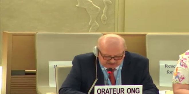 ندد ممثل اتحاد الحقوقيين العرب لدى الأمم المتحدة الدكتور الياس الخوري بممارسات قوات الاحتلال الأمريكي والتركي في سورية مشيرا إلى أن ما تسمى اللجنة الدولية المعنية بحقوق الإنسان في سورية عملت منذ نشوئها بقرار مسيس يستهدف هذا البلد على خدمة رعاتها وتجهيل الفاعل الحقيقي لانتهاكات حقوق الإنسان.