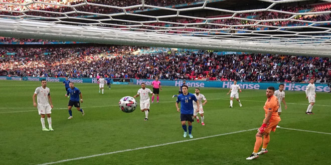 تأهلت إيطاليا إلى نهائي بطولة أوروبا لكرة القدم بعد فوزها بركلات الترجيح 4-2 على إسبانيا بعد انتهاء الوقتين الأصلي والإضافي بالتعادل 1-1 في استاد ويمبلي اليوم.