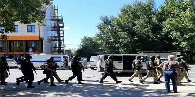وذكرت وكالة سبوتنيك أن الشرطة الروسية وقوات الأمن تلقت بلاغاً عن اقتحام شخص لأحد فروع المصرف واحتجازه ثلاث رهائن من العاملين فيه مشيرة إلى أنه طالب بأموال وهدد بوجود “شيء خطير” في حقيبته.