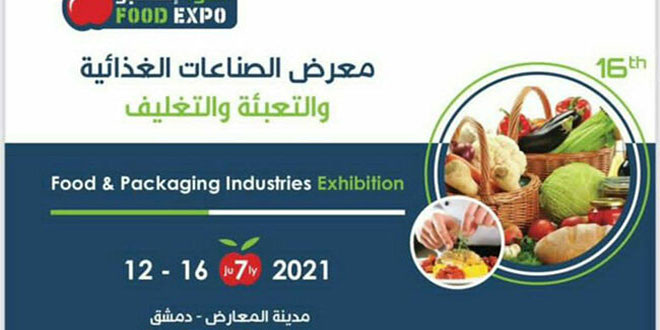 بمشاركة نحو 80 من كبرى الشركات الغذائية الوطنية تنطلق اليوم فعاليات الدورة الـ 16 لمعرض الصناعات الغذائية والتعبئة والتغليف (فود إكسبو 2021 )الذي تنظمه مجموعة دلتا للمعارض والمؤتمرات الدولية برعاية وزارة الصناعة وبدعم من اتحاد غرف التجارة السورية وغرفة صناعة دمشق وريفها واتحاد غرف الزراعة السورية.