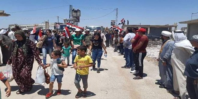 وعبر الأهالي عن شكرهم لمختلف الجهات والمنظمات الداعمة في تأمين عودتهم لقريتهم ومنازلهم بعد تأهيل المرافق الخدمية المتضررة بفعل الإرهاب مؤكدين اصرارهم على المساهمة في إعادة الإعمار والبناء ووقوفهم خلف قائدهم وجيشهم حتى تحرير كامل التراب السوري من دنس الإرهابيين.