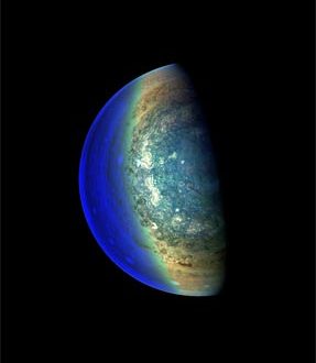 وتحدث ظاهرة مماثلة على الأرض حيث يخلق الشفق القطبي الشمالي هذا الأمر لكن كوكب المشتري أقوى بكثير حيث يطلق مئات الجيجاوات من الطاقة.
