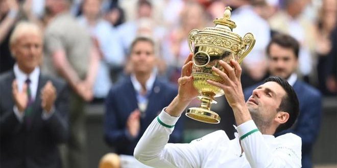 توج الصربي نوفاك ديوكوفيتش المصنف أولاً عالمياً بلقب بطولة ويمبلدون للتنس ثالثة البطولات الأربع الكبرى بعد فوزه على الإيطالي ماتيو بيريتيني بالمباراة النهائية التي جمعتهما اليوم في العاصمة البريطانية لندن.