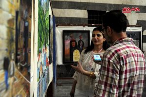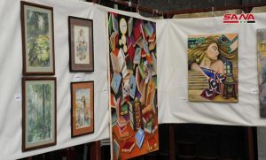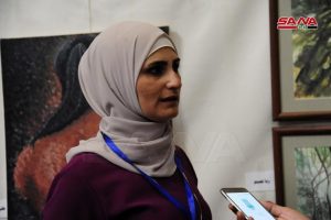 الفنانة ربا تميم شاركت بلوحات طبيعة بالألوان المائية بما فيها من إحساس وهدوء مشيرة إلى أنها تميل إلى الطبيعة البكر التي ترمز إلى السلام والمحبة وهذا ما تسعى إليه رغم سنوات الحرب والمعاناة فالشعب السوري يستحق العيش بعيداً عن الحروب التي جرها الإرهاب.