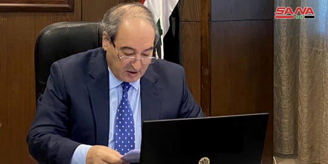 وجدد المقداد التأكيد على موقف سورية الثابت والمبدئي الداعم للقضية الفلسطينية وحق الشعب الفلسطيني في تقرير مصيره وإقامة دولته المستقلة على كامل ترابه الوطني وعاصمتها القدس مع ضمان حق العودة للاجئين وفقاً للقرار الأممي رقم 194 لعام 1948.