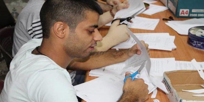 وحول مشغل تدوير الورق أوضح مراد أنه يضم 7 أشخاص من ذوي الإعاقة مع مساعدين ومرافقين ومشرفين ومدربين ويقسم العمل فيه على مجموعات لفرز الأوراق المستخدمة التي تأتي للجمعية من مصادر مختلفة لتبدأ عملية إزالة الورق المكتوب أو المطبوع عليه والإبقاء على الأجزاء البيضاء الخالية من الكتابة.