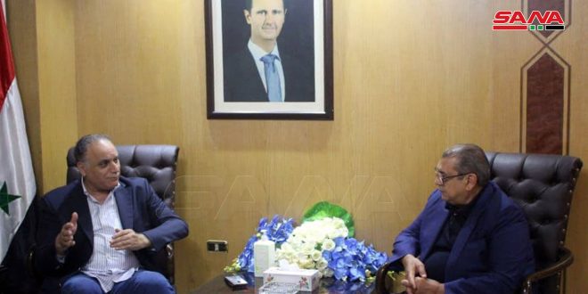 بحث وزير التجارة الداخلية وحماية المستهلك طلال البرازي مع رئيس غرفة تجارة الأردن نائل رجا الكباريتي اليوم علاقات التعاون الاقتصادي والتبادل التجاري بين سورية والأردن ودور رجال الأعمال وأعضاء غرف التجارة في تطوير وتفعيل العلاقات وفتح آفاق جديدة لها بما يخدم مصلحة شعبي البلدين.
