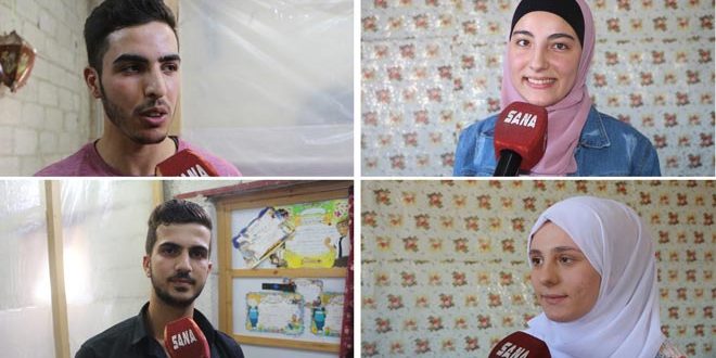 سانا التقت اليوم في منزل امنة عبد الله إحدى الطالبات المتفوقات والتي حصلت على المرتبة الثانية في الشهادة الثانوية الفرع العلمي على مستوى المحافظة وقد استضافت أقرانها من باقي الاختصاصات.