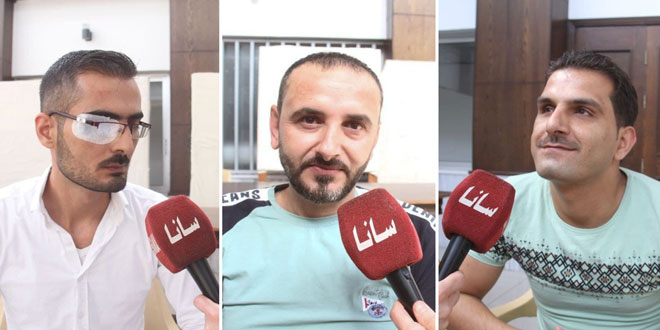الجريح وحيد البشلاوي من صافيتا مصاب بنسبة عجز 85 بسبب طلق ناري بالرأس أشار إلى أنه تقدم العام الماضي لشهادة التعليم الأساسي ونجح فيها وهذا العام تقدم لامتحان الشهادة الثانوية ونجح أيضاً بالفرع الأدبي بمجموع 1560-2800 علامة منوهاً بدور مشروع جريح وطن الذي قدم له ولزملائه الجرحى كل التسهيلات اللازمة لضمان النجاح ومؤكداً أنه لن يقف عند حدود الإصابة وسيكمل دراسته بعزيمة وإصرار.