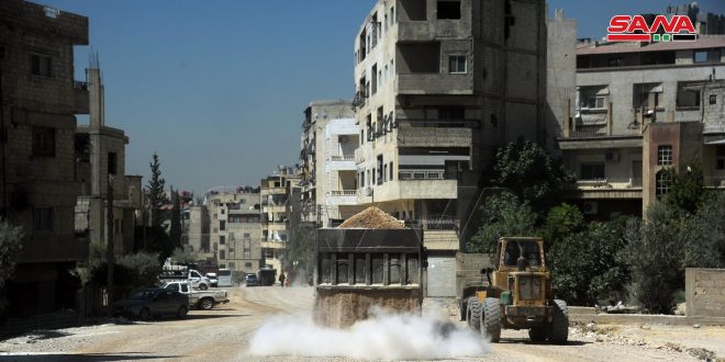 المشرف العام على تنفيذ المشروع المهندس أسامة جميلة ذكر أن مكان المشروع كان ملحوظاً في المخطط التنظيمي لتلك المنطقة لكن لم يتم التنفيذ نظراً للإشغالات الكبيرة التي كانت عليه وبعد استملاك المكان من قبل المجلس أزيلت الإشغالات وتم شقه ورصفه من بقايا المقالع منذ ستة أشهر والآن بات في مراحله النهائية.