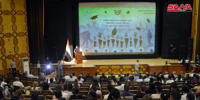 كرمت محافظة اللاذقية اليوم 139 طالباً وطالبة من المتفوقين والناجحين في شهادتي الثانوية والتعليم الأساسي من ذوي الشهداء والجرحى.