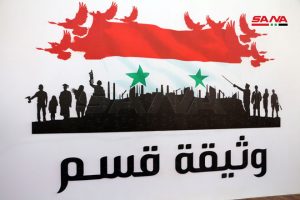 واختتمت الفعالية بأداء قسم أكد فيه الحضور على وقوفهم مع الرئيس الأسد لبناء سورية المتجددة ومتابعة العمل في كل المجالات للنهوض بها من جديد ومواجهة كل التحديات.