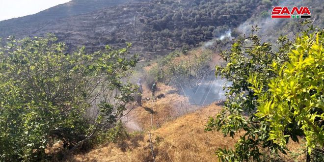 أخمد كوادر الإطفاء في محافظة حمص اليوم حريقا كبيراً نشب في أشجار مثمرة وحراجية وأعشاب يابسة بالقرب من بلدة مرمريتا بريف حمص الغربي.