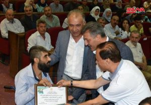 أقامت محافظة حماة اليوم حفل تكريم للطلاب والتلاميذ وجرحى الجيش المتفوقين في شهادات الثانوية والتعليم الأساسي والإعدادية الشرعية.