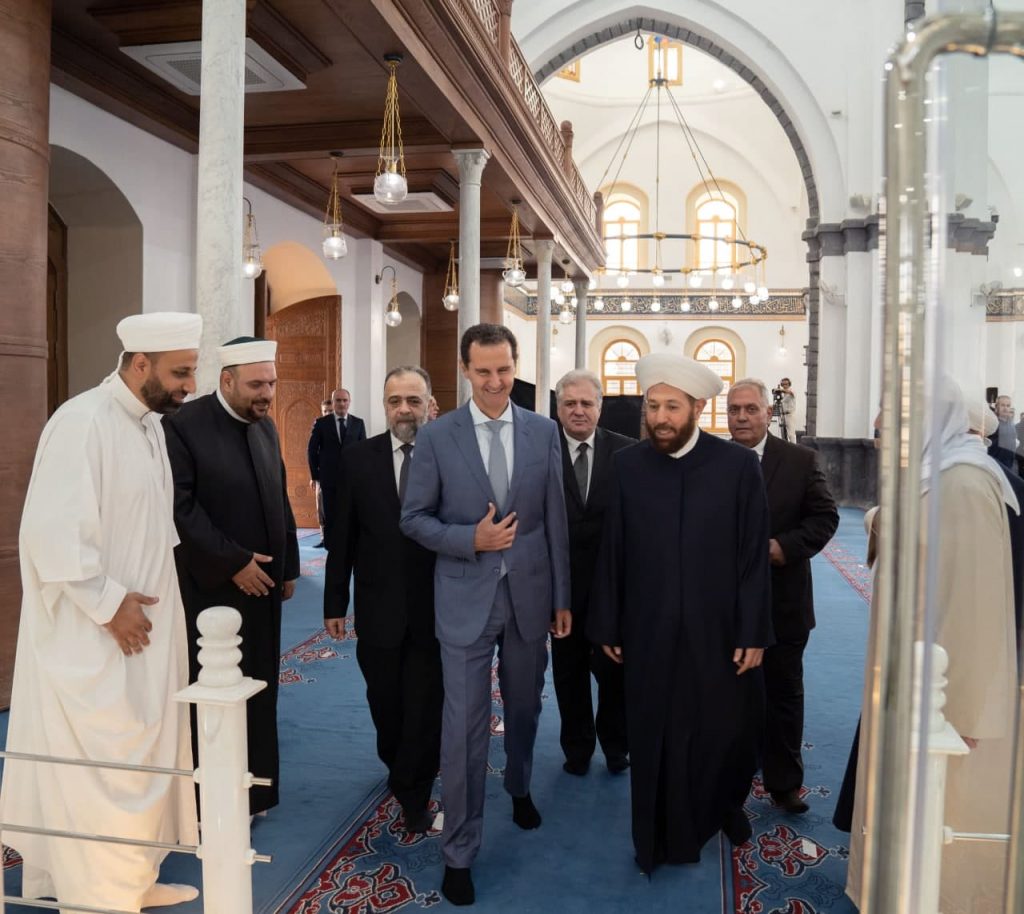 أدى السيد الرئيس بشار الأسد صلاة عيد الأضحى المبارك صباح اليوم في رحاب جامع الصحابي الجليل خالد بن الوليد في مدينة حمص.