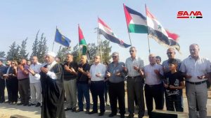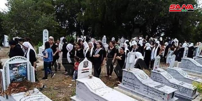 وفي السويداء حرص عدد من أسر الشهداء وفعاليات أهلية وحزبية على زيارة أضرحة الشهداء ونصبها التذكارية في مناطق متفرقة بالمحافظة صباح أول أيام عيد الأضحى المبارك مبينين أن ذكراهم خالدة باقية ابداً وهي الحاضر الأكبر في كل عيد ومناسبة.