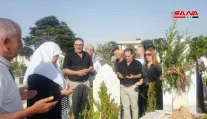 وفي حمص زارت فعاليات رسمية وشعبية مقبرة الشهداء في حي الأرمن ووضعوا أكاليل الزهور وقرؤوا الفاتحة على أرواحهم الطاهرة.