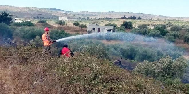أخمد عناصر الدفاع المدني في محافظة حمص اليوم حريقاً اندلع في أعشاب يابسة وأشجار زيتون بريف المحافظة الغربي.