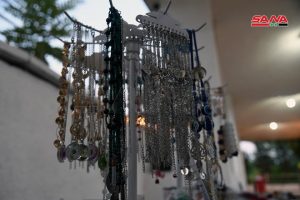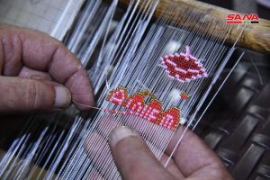 ومن حي الشاغور بدمشق بين ماهر منيني أنها مشاركته الأولى بمعرض الزهور لعرض لوحاته ومشغولاته التي يحيكها على النول القديم إحياء لتراث الآباء والأجداد ويستخدم فيها الخيط والخرز موضحاً أنه وجد في المعرض فرصة لتسويق منتجاته والبحث عن مهتمين بهذا المجال.