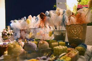 مشغولات يدوية فنية وتراثية تستوقف رواد معرض الزهور الدولي بدورته الـ 41 التي تقام في حديقة تشرين بدمشق يعرضها حرفيون محليون مستفيدين من حركة الزوار النشطة التي يشهدها المعرض للترويج لمنتجاتهم والتسويق لها واستطلاع أذواق الزبائن.