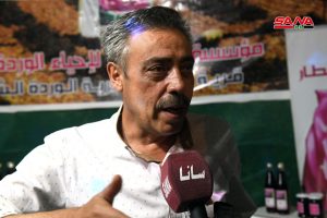 مدين بيطار من جمعية المراح لإحياء وتطوير الوردة الشامية بين أنه يعرض في جناح الجمعية منتجات شراب الوردة الشامية والمربى وماء الورد الذي يتم إنتاجه بطرق وأجهزة تقطير بسيطة مشيراً إلى أن جميع هذه المنتجات يتم تصريفها في الأسواق وتعتبر المعارض فرصة للتعريف بها وتسويقها.