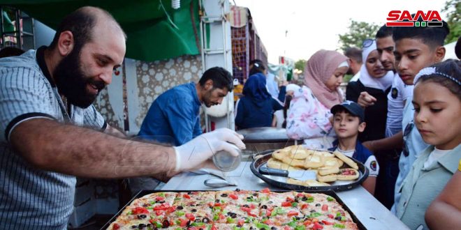 أصناف غنية ومتنوعة من الأكلات الشعبية والوجبات السريعة والحلويات يقدمها عدد من أصحاب المطاعم المشاركين بمعرض الزهور السنوي الذي تقيمه وزارة السياحة بالتعاون مع محافظة دمشق بدورته الـ 41 بحديقة تشرين.