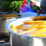 الوجبات السريعة والمثلجات والعصائر وخبز الصاج وحلويات تراثية شعبية كغزل البنات وغيرها من المأكولات تلبي مختلف الأذواق حرص الباعة على تقديمها لزوار المعرض حيث بين محمود قطان صاحب أحد مطاعم الوجبات الجاهزة أن مشاركته تسهم بالترويج أكثر لمحله وكسب ثقة الزبائن إلى جانب المشاركة في أجواء المعرض الاجتماعية.