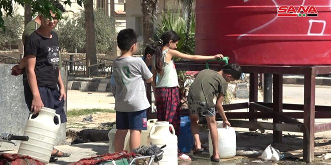 وأضاف العكلة “نقوم حالياً بالتعاون مع كل الجهات والمنظمات والجمعيات لتأمين ونقل مياه الشرب للأهالي وذلك من محطة آبار نفاشه شرق المدينة ومن محطة تل براك” مشيراً إلى أن “الصهاريج التابعة للمنظمات تتم تعبئتها من المناهل الخاصة بإشراف من المؤسسة للتأكد من صلاحيتها للشرب بالتوازي مع زيادة عدد الخزانات في مركز المدينة بشكل متواتر وفق الإمكانات وذلك بالتعاون والتنسيق مع مديرية الشؤون الاجتماعية والجمعيات الأهلية”.