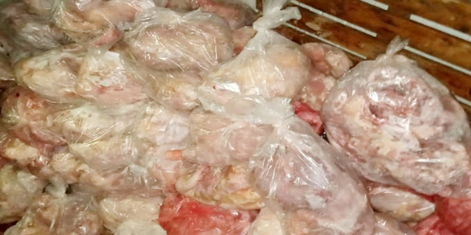 ضبطت دوريات مديرية التجارة الداخلية وحماية المستهلك في دير الزور اليوم 40 كغ من لحم الفروج الفاسد وذلك في أحد المستودعات بالمدينة.