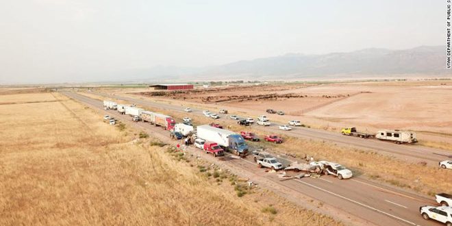 ونقلت شبكة سي إن إن عن السلطات المحلية في الولاية قولها إن نحو 20 مركبة اصطدمت ببعضها مساء أمس في مقاطعة ميلارد بولاية يوتا بعد أن تسببت الرياح العاتية في حدوث عاصفة رملية على الطريق أعاقت الرؤية مشيرة إلى أن سبعة أشخاص لقوا مصرعهم فيما نقل العديد من المصابين إلى المستشفيات وهم في حالة حرجة.