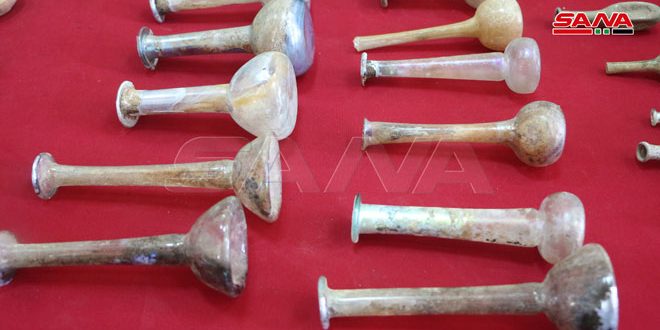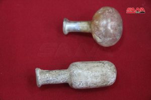 وائل كيوان أمين متحف درعا الوطني بين أن القطع الأثرية المصادرة عبارة عن فخاريات وزجاجيات تعود للفترات الرومانية والهيلنستية والبرونز المتأخر الحديث مشيراً إلى أن القطع هي أسرجة وأوان وكأس وقوارير ومزهريات وختم.